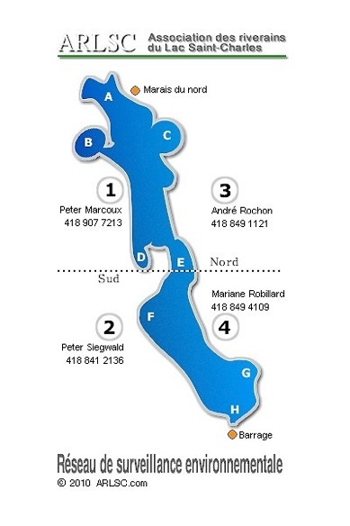Le réseau de surveillance environnementale a été mis sur pied suite aux graves problématiques que vit le lac Saint-Charles depuis quelques années: floraisons de cyanobactéries, fuites de fosses septiques, déversements d’hydrocarbures, etc. Après avoir entendu plusieurs récits de riverains qui observaient des écoulements ou des odeurs suspectes près du lac (je vous épargne les détails) et suite à une initiative de l’Organisme de Bassin versant de la Capitale (OBV) dont fait partie votre association depuis 2007, votre conseil d’administration a décidé de mettre en place ce réseau.
