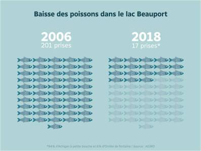 La coordonnatrice géographique de AGIRO, Sonja Behmel, est catégorique : Il y a vraiment une diminution de la biodiversité. Sur une même période, 201 poissons ont été pêchés en 2006 contre 17 prises en 2018. AGIRO a mesuré une importante baisse du nombre de prises dans le lac Beauport.